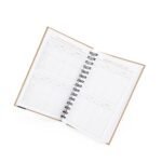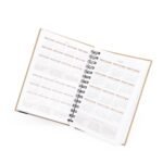 Agenda diaria 2025 com espiral, material kraft, capa dura. Contem paginas de dados pessoais, calendario 2024 a 2025, orcamento pessoal, anotacoes, mapa do Brasil, mapa da America do Sul, mapa da America do Norte, mapa Mundi, mapa da Europa, mapa da Africa, mapa da Asia, indice telefonico e planejamento.