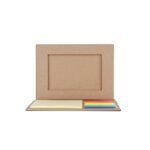 Bloco de anotacoes ecologico com autoadesivos, porta caneta e porta retrato. Contem conjunto de cinco bloquinhos autoadesivos coloridos, bloco autoadesivo para anotacoes , porta canetas e porta retrato.