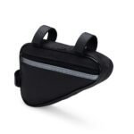 Esta bolsa para quadro e uma opcao pratica para carregar objetos enquanto estiver andando de bicicleta. Confeccionada em Oxford resistente e impermeavel, a bolsa conta com unico compartimento com fechamento em ziper, o que a torna ideal para armazenar objetos menores de forma eficiente, protegendo todo o conteudo de seu interior contra a chuva e respingos dagua durante o trajeto. Conta com uma tira refletiva costurada para maior visibilidade no transito, alem de alcas de nylon com fechamento em velcro de facil ajuste para o encaixe correto no quadro da bicicleta.