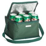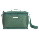 Bolsa termica de nylon 8 litros com bolso posterior em malha. Acompanha plaquinha metalica.