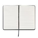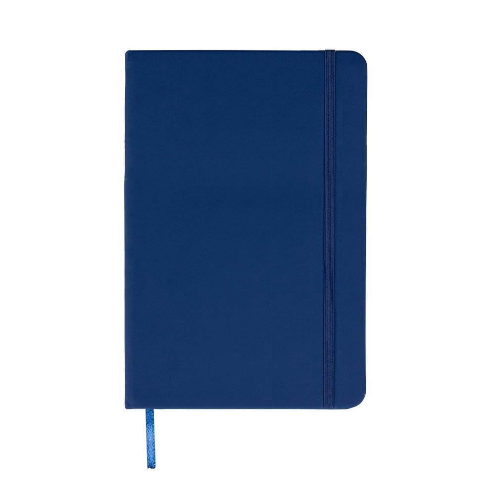 Caderneta emborrachada com elastico para lacre e marcador de pagina em cetim, contem aproximadamente 76 folhas com pauta na cor marfim.