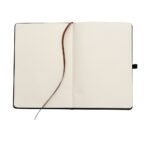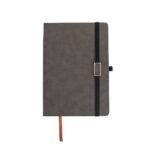Caderneta emborrachada com suporte para caneta. Contem aproximadamente 96 folhas amarelas sem pauta, suporte de nylon para caneta (nao acompanha), marcador de pagina em cetim e elastico para lacre com plaquinha de centro emborrachado.
