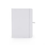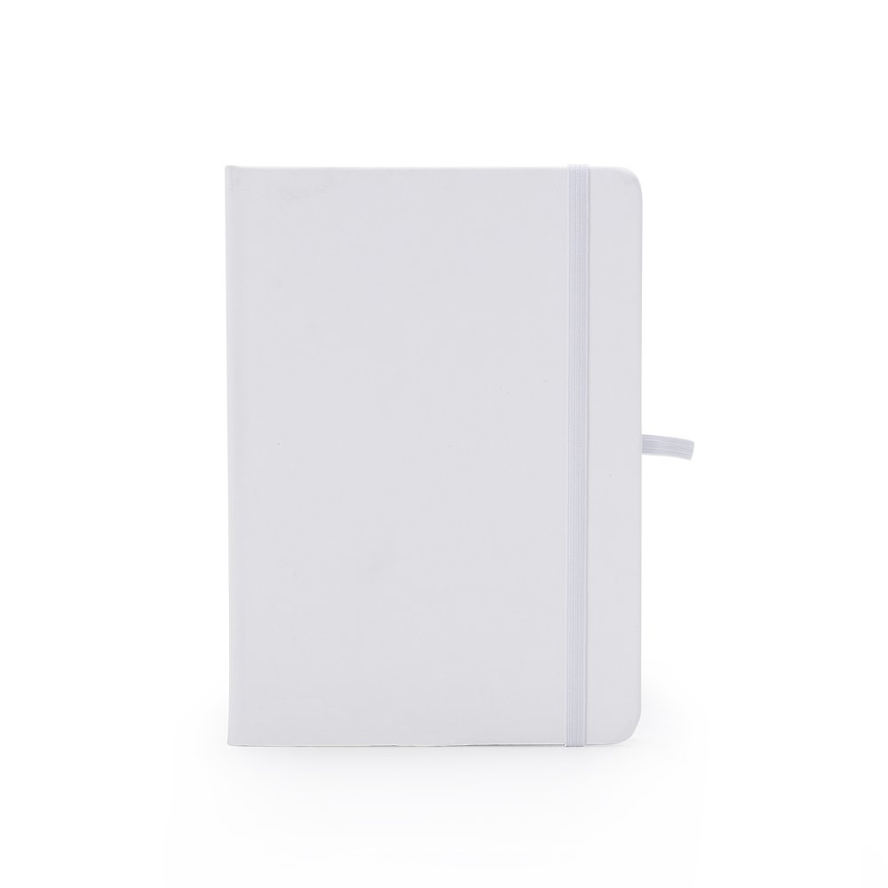 Caderneta emborrachada com suporte para caneta, elastico para lacre e marcador de pagina em cetim, contem aproximadamente 80 folhas com pauta na cor branca.