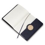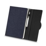 Nosso caderno de anotacoes e o ideal para quem busca uma opcao corporativa sustentavel. Com capa em tecido rPET com detalhe em bambu e fechamento imantado, ele alia praticidade e consciencia ambiental. Seu miolo conta com 80 folhas pautadas, e a parte interna possui um suporte para caneta, alem de um marcador de pagina em cetim. Um promocional perfeito para deixar uma impressao duradoura, oferecendo funcionalidade para as anotacoes. Obs.: Imagem meramente ilustrativa, nao acompanha caneta.