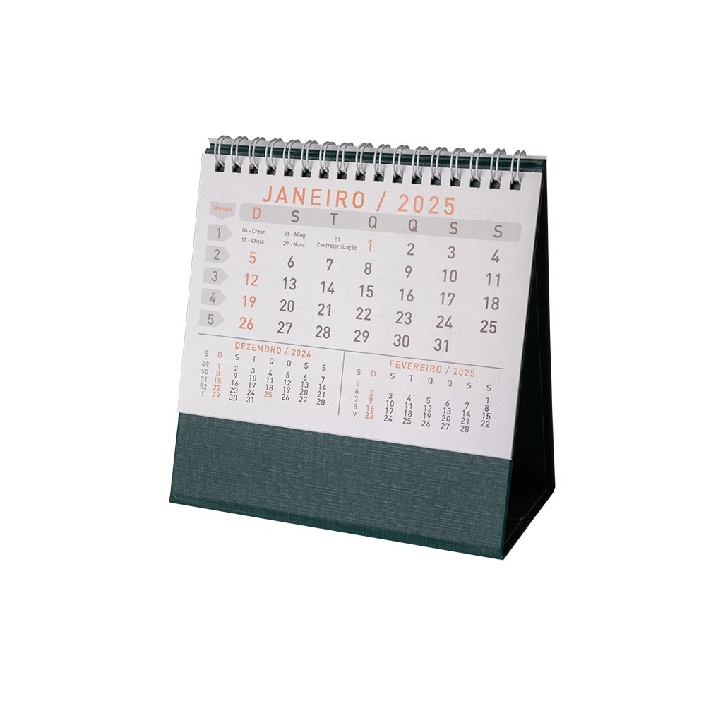 Calendario de mesa 2025 em papel couche 115g, base percalux.