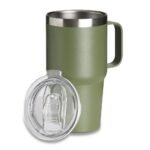 Caneca termica de Inox com capacidade para 700ml. Acompanha uma tampa de plastico transparente .