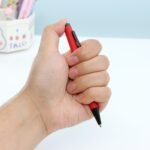 Caneta metalica com acabamento emborrachado, carga esferografica azul 1.0mm e acionamento por clique.
