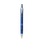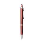 Caneta metalica com touchscreen, com detalhe emborrachado na parte inferior, carga esferografica azul de 1.0 mm e acionamento por clique.