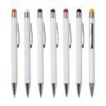 Caneta metalica com touch screen, carga esferografica azul 1.0 mm e acionamento por clique.