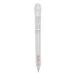Caneta plastica com carga esferografica azul e acionamento por clique.