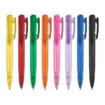 Caneta plastica com carga esferografica azul 1.0 mm e acionamento por clique. OBS.: PEDIDOS MINIMO DE 50 PECAS!