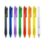 Caneta plastica com detalhe emborrachado, carga esferografica azul 1.0 mm e acionamento por clique. OBS.: PEDIDOS MINIMO DE 50 PECAS!