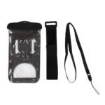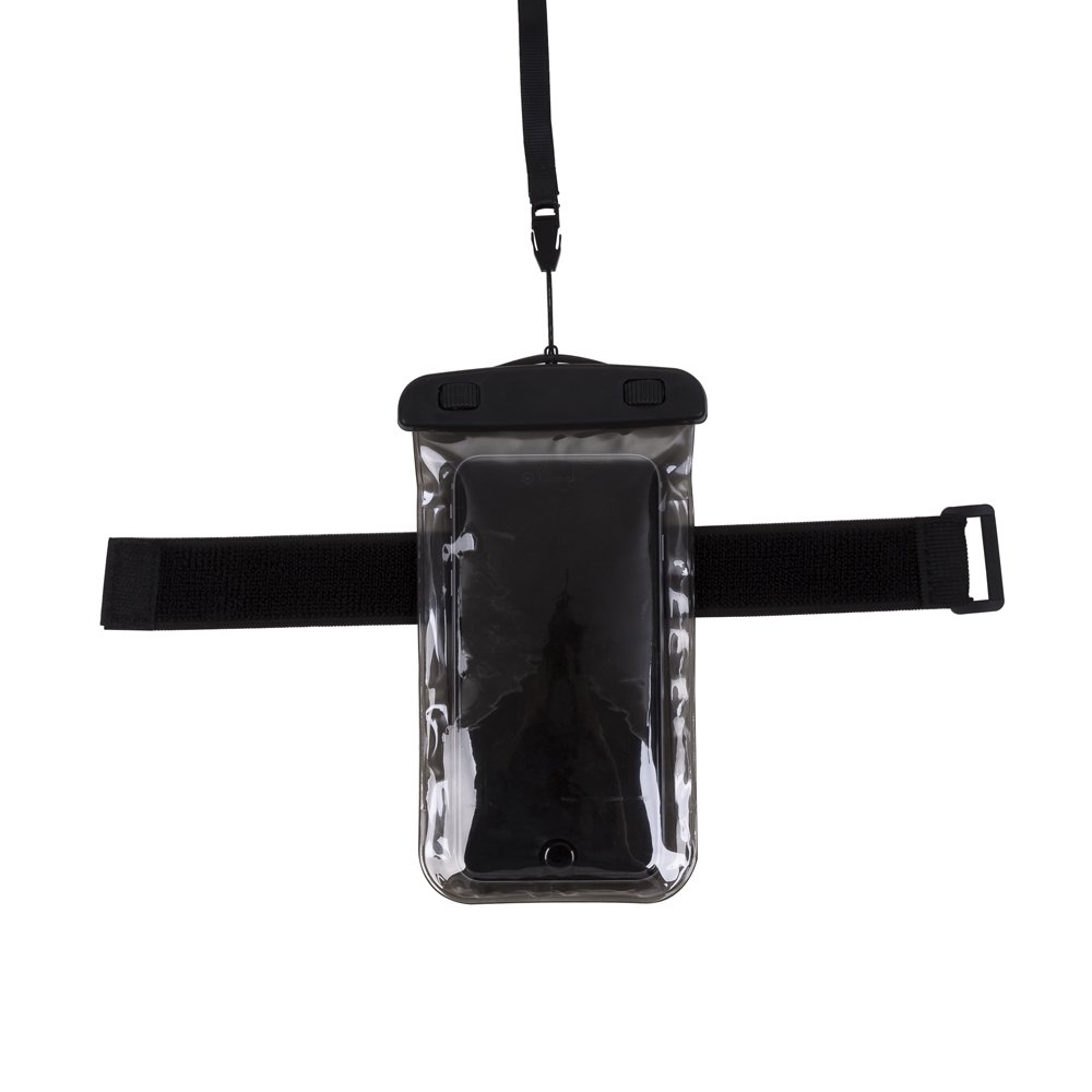 Case impermeavel universal para smartphones com cordao de nylon de tamanho regulavel.