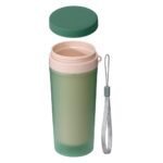 Copo de plastico polipropileno com capacidade para 300ml livre BPA, parede dupla. Acompanha tampa rosqueavel e alca de nylon para transporte.