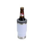Copo termico multiuso com parede dupla em inox, capacidade de 380ml. Pode ser utilizado como copo, porta long neck ou porta lata. Detalhe em inox na parte superior e ainda contem abridor de garrafa na parte inferior do copo.