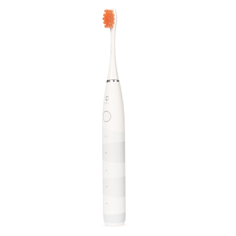 Escova de dentes eletrica com estrutura em plastico e metal. Com bateria de duracao estimada de ate 180 dias, oferece cinco modos de escovacao diferentes que funcionam em ciclos de aproximadamente dois minutos: matutino, noturno, limpeza, clareador e suave. Acompanha cabo USB-C para carregamento.