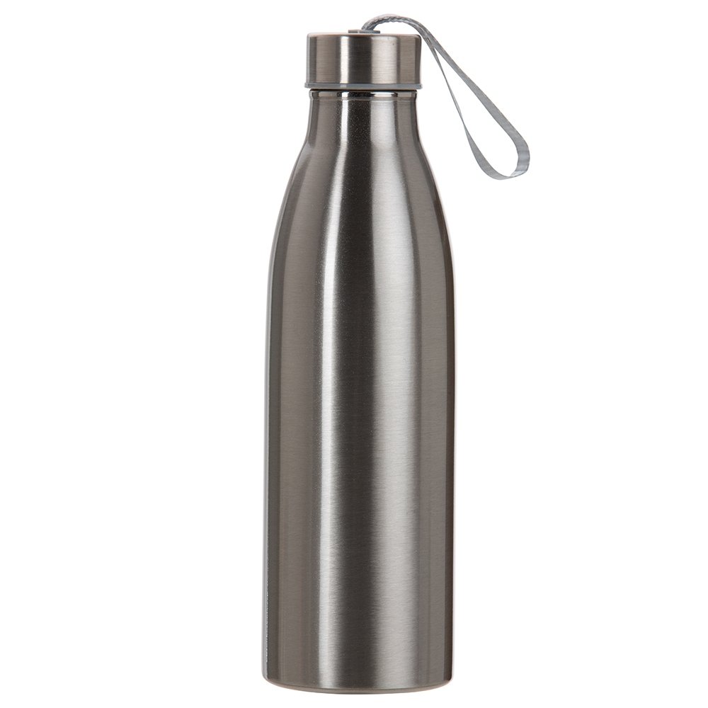 Uma garrafa inox com formato minimalista e capacidade de ate 750ml. Sua tampa conta com uma alca de nylon embutida para transporte.