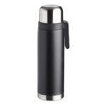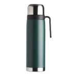 Garrafa termica 900ml em inox com alca plastica. Possui tampa rosqueavel, tampa interna rosqueavel com bico plastico vermelho.