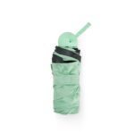 Guarda-chuva manual capsula em poliester de impacto impermeavel e tecido interno em vinil. Com 6 varetas e estrutura em aco, possui pegador, botao de abertura e alca de Nylon. Acompanha estojo protetor com alca.