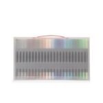 Kit com 100 canetinhas coloridas de pontas duplas: uma fina e outra em formato de pincel. Cada canetinha possui corpo leve em plastico e tinta a base de agua, livre de odores e atoxica. Acompanha estojo plastico com fechamento em botoes e alca para transporte.