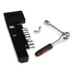 Kit ferramenta com 12 pecas em estojo plastico. Contem: 1 chave catraca, 1 chave extensora e 10 soquetes.