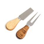 Kit queijo 3 pecas em estojo kraft, contem: tabua de madeira redonda, faca reta, e garfo. Tabua com orificio para encaixe.