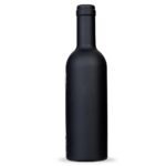Kit vinho formato garrafa com 3 pecas: wine collar, bico condutor com tampa e saca-rolhas metalico com lamina de corte e abridor de garrafa. Estojo com fechamento imantado e area interna com berco de espuma.