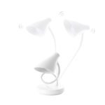 Luminaria articulavel em led recarregavel e funcionamento touch, material plastico. Contem tres estagios de iluminacao com regulagem de intensidade touch: luz fria (branca), luz quente (amarela) e luz mista (branca e amarela). Base com botao para ligar e desligar. Acompanha uma bateria de litio e cabo USB Tio-C para carregamento.