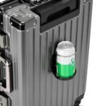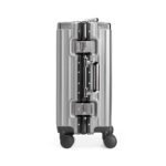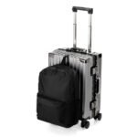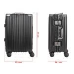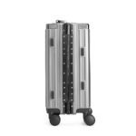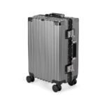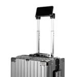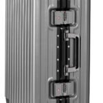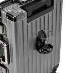 Mala de viagem 46 litros feita em plastico com acabamento em aluminio, contem cadeado numerico TSA. Compartimentos internos com bolso telado, bolso plastico para itens molhados e cinta compressora para roupas. A mala possui duas alcas de maos, puxador retratil com regulagem de tamanho e suporte para celular, suporte porta bolsa, suporte para copo ou garrafa, quatro rodinhas 360o e apoios laterais.