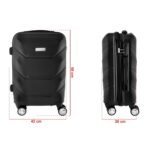 Mala de viagem media confeccionada em ABS com trava de seguranca. Possui quatro rodinhas e apoiadores com borracha anti-deslizante para posicionar a mala na horizontal, alca de carrinho com botao para ajuste de tamanho; placa central para personalizacao; forro de poliester e compartimentos internos de ziper alem de um cinto protetor.