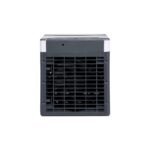 Mini climatizador de ar portatil multifuncoes, possui reservatorio de agua de 500ml, tres niveis de potencia, oscilacao vertical com regulagem manual e luzes LED RGB. Pode ser usado como climatizador, ventilador e umidificador.