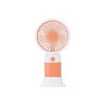 Mini ventilador plastico recarregavel com base removivel e botao de acionamento. Acompanha cabo usb.