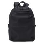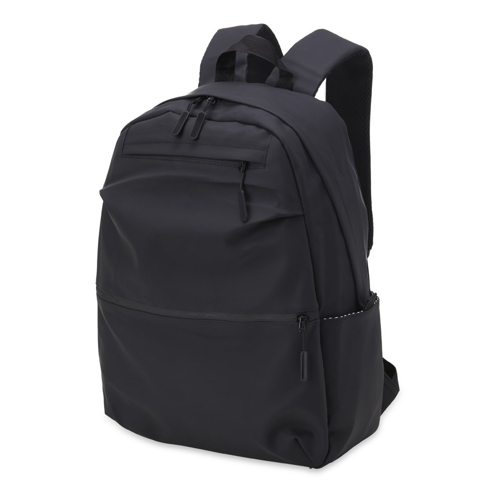 Mochila de couro sintetico impermeavel de 30 litros com tres compartimentos, sendo o principal com bolso para notebook 15,6. Com bolsos laterais e interior listrado, a mochila possui alca para encaixe em malas de viagem, alca de mao e alcas para as costas com revestimento espumado. Acompanha plaquinha metalica.