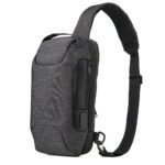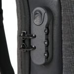 Mochila de ombro 10 litros em nylon resistente a agua com tres compartimentos, sendo dois deles exclusivos para cartoes e protecao contra furto. Contem cadeado numerico (TSA), suporte externo usb, bolso para tablet 9, bolsos internos e revestimento costado espumado.