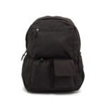 Mochila de poliester de 25 litros com dois compartimentos, sendo o principal com um bolso raso para notebook de ate 15,6 polegadas. A mochila possui um adaptador USB externo e quatro bolsos: dois laterais com elastico, um com velcro e um com cordao ajustavel.