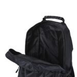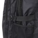 Mochila de nylon 42 litros com dois compartimentos e bolsos laterais em malha. Possui fivelas laterais para regulagem de tamanho e duas alcas de maos, sendo uma delas reforcada com pegador plastico.