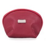 Necessaire em couro sintetico texturizado com uma placa central para personalizacao. Parte interna revestida com cetim.