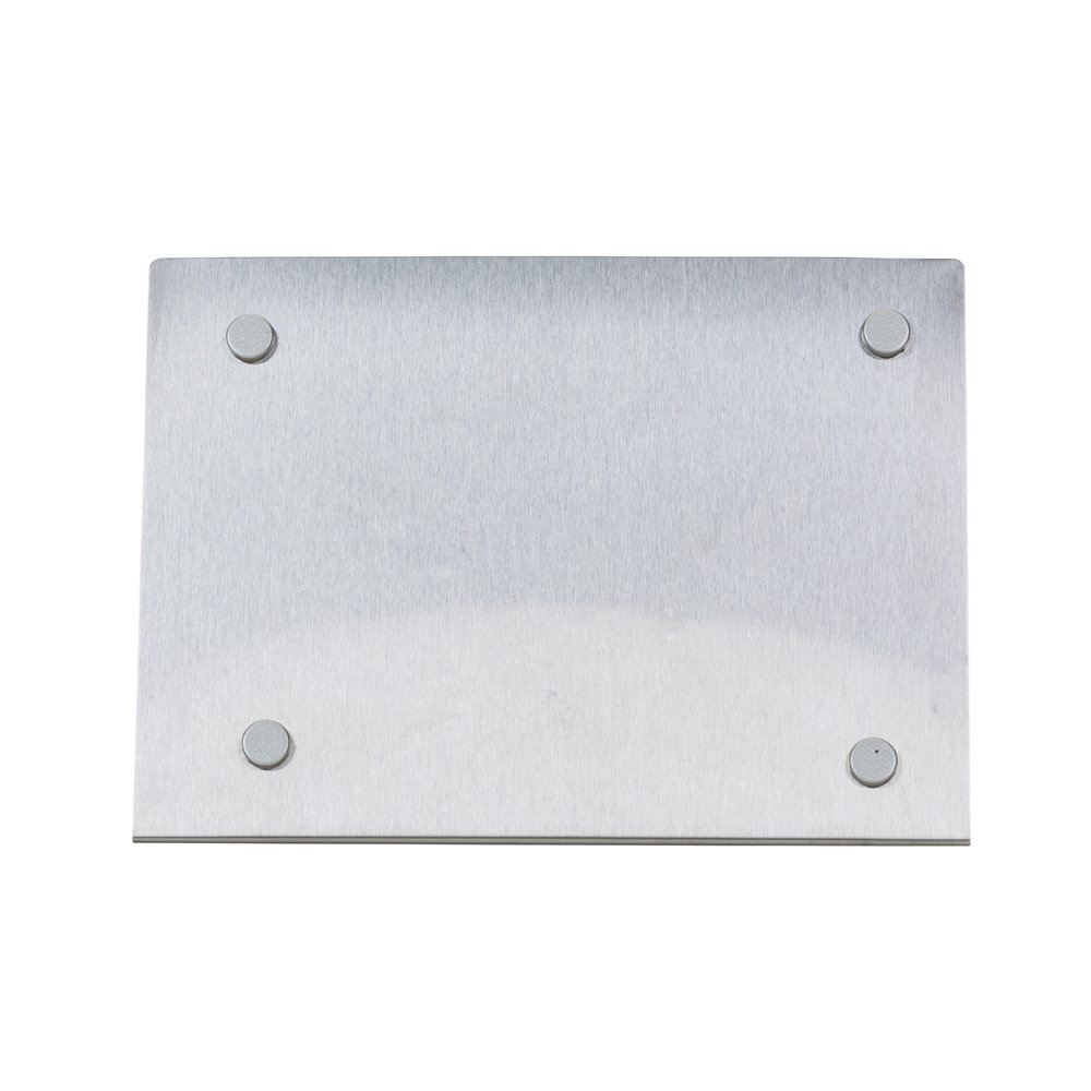 Porta retrato 10 x 15 em inox escovado, modelo chapa metalica acompanha quatro “botoes” ima e pelicula protetora anti-risco.