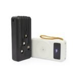 Mantenha a bateria de smartphone e outros dispositivos carregadas com um power bank agil e eficiente. Feito em plastico e com capacidade de 20.000mAh, ele tem capacidade de sobra para fornecer a recarga necessaria para celulares ou tablets nos momentos mais importantes do dia. Possui painel LED com indicador de porcentagem de carga da bateria do aparelho de recarga. Versatil, o power bank e compativel com diversos dispositivos, pois conta com quatro cabos acoplados: USB-C, Micro USB, Lightning e Cabo USB, e tambem com espaco reservado para carregamento por inducao, alem de uma saida USB-C, Micro-USB e USB para recarga do carregador. Tambem apresenta um suporte lateral integrado para manter o celular na horizontal durante o carregamento, facilitando a visualizacao de videos ou participacoes em reunioes virtuais enquanto o dispositivo carrega, alem de uma alca em couro sintetico para tornar seu transporte mais pratico no dia a dia.