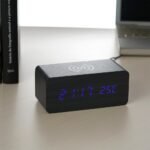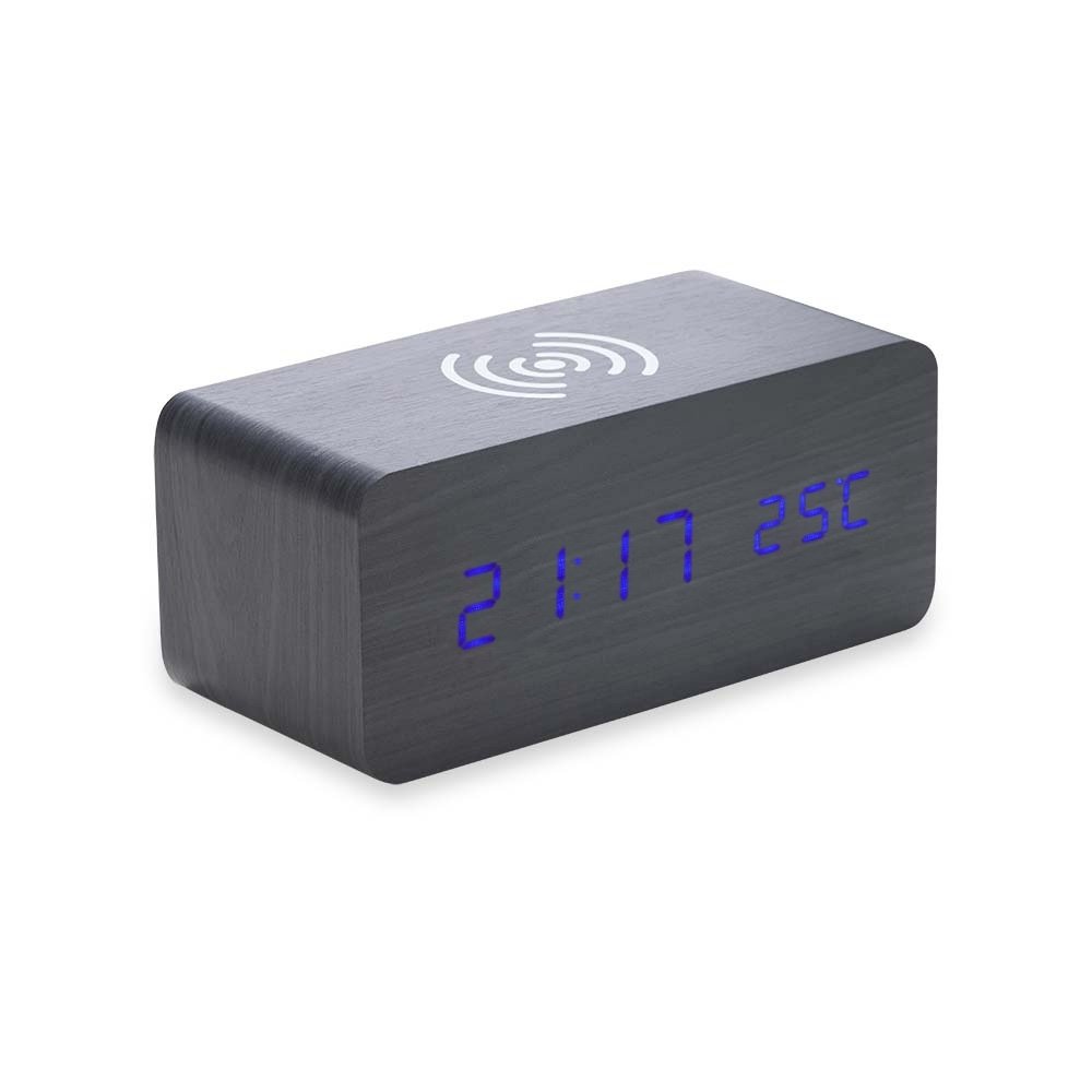 Estilo e praticidade na hora certa! O nosso Relogio digital LED possui alarme, medidor de temperatura e carregamento por inducao, carregando smartphones e outros dispositivos compativeis de forma rapida e facil, sem a necessidade de fios. Totalmente produzido em MDF, com um display em LED, parte traseira com mecanismo para ajustes, entrada DC 5V e compartimento de pilhas. Podendo ser utilizado atraves da fonte USB (acompanha) ou 3 pilhas AAA (nao acompanha).