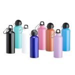 Squeeze 500ml de aluminio com pintura metalizada, tampa rosqueavel e acompanha um segundo bico com mosquetao (nao e termico).