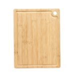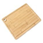 Tabua de corte de bambu com canaleta e acesso para gancho.