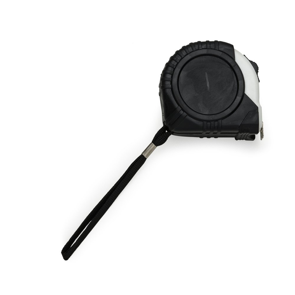 Trena de 3 metros colorida emborrachada com relevo e detalhe plastico branco. Possui trava, prendedor de metal em um dos lados e acompanha cordao de nylon.